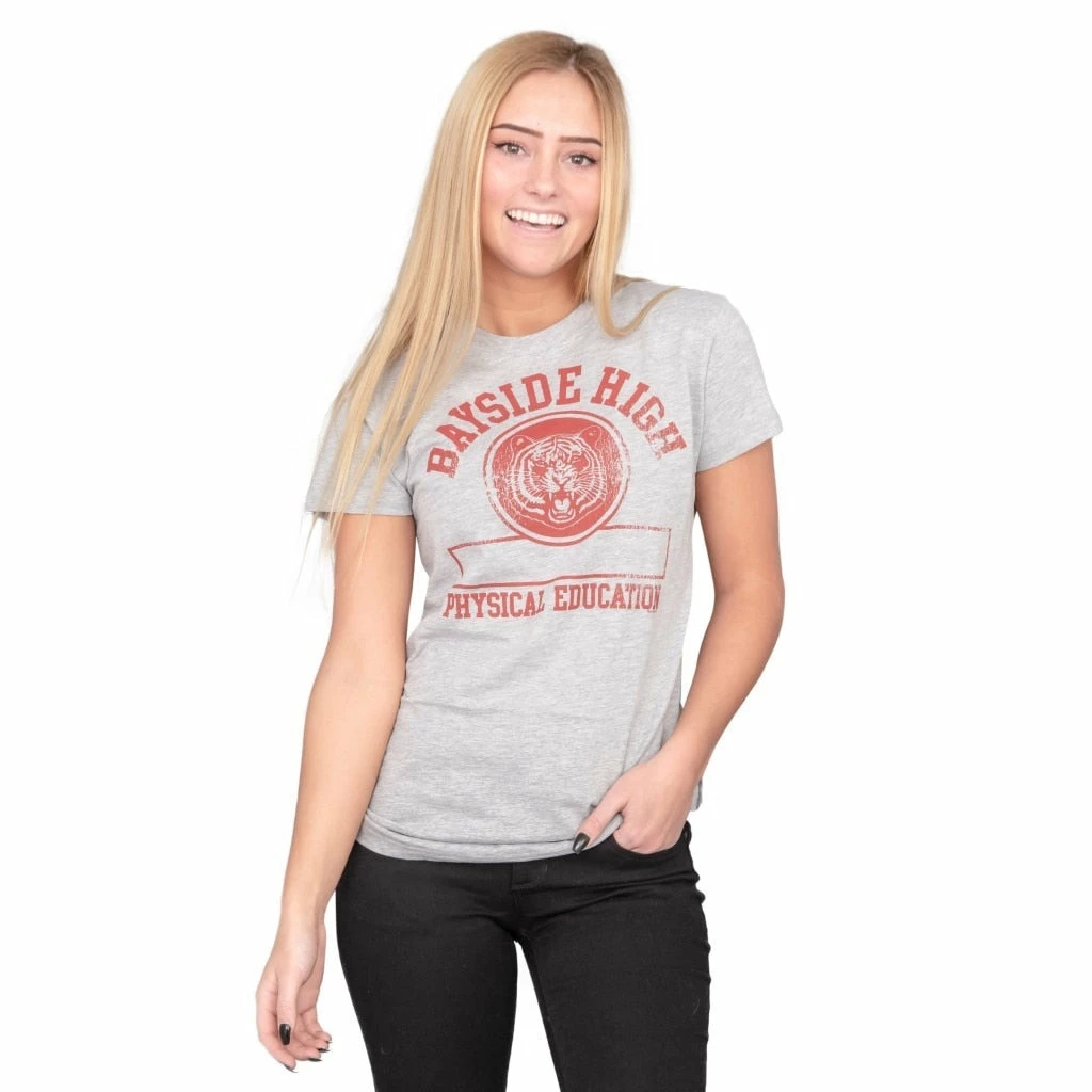 Can’t quite hack it on the Bayside High cheerleading squad? Guess you’d better order this officially licensed “Saved by the Bell” juniors tee and slum it with Screech in P.E.! The gray cotton tee features the Bayside High school logo and reads, “Bayside High Physical Education.”