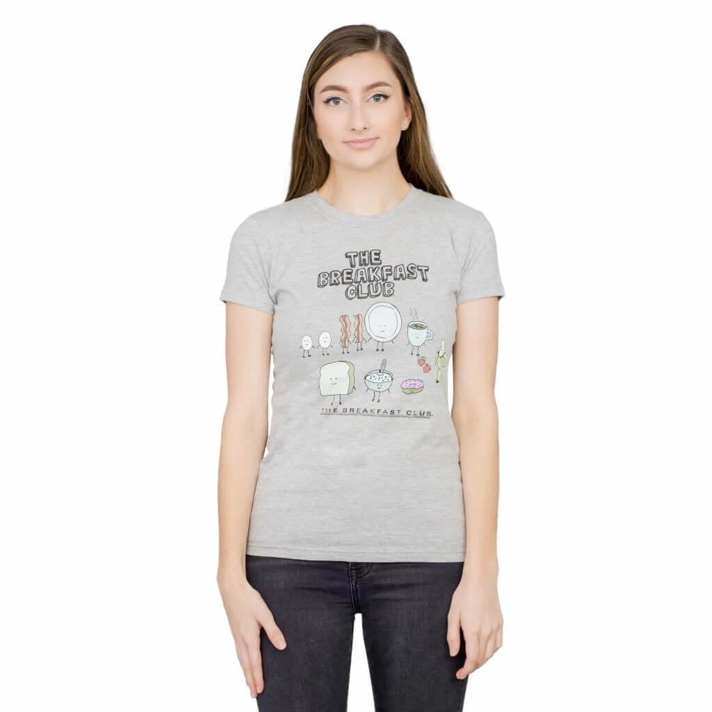 Show off your fine sense of humor when you wear this officially-licensed The Breakfast Club t-shirt. Featuring some fun cartoon drawings of eggs, bacon, coffee, a banana, some toast, a bowl of ceral or oatmeal and a bagel with cream cheese, this The Breakfast Club movie t-shirt isn’t so much representative of the hit 1980s John Hughes movie, but more a comedy state-of-mind. Show your love for the 1980s movie The Breakfast Club when you wear this funny t-shirt.!