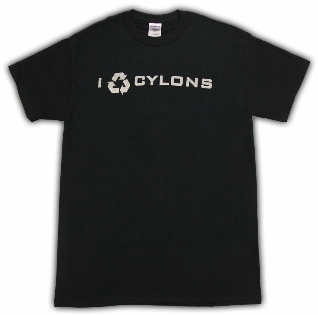 No need to waste resources! Show the galaxy you’re in favor of sending the Cylons back to their monotheistic deity by wearing this officially licensed “Battlestar Galactica” t-shirt. The shirt’s text is printed in a shiny, futuristic silver foil, possibly made from Centurion armor.