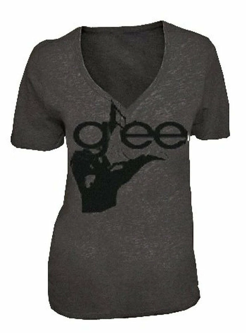 Pay tribute to Fox’s break-out hit! This officially licensed “Glee” v-neck juniors t-shirt features the logo from the popular musical comedy-drama. The charcoal t-shirt has been acid-washed for vintage appeal.