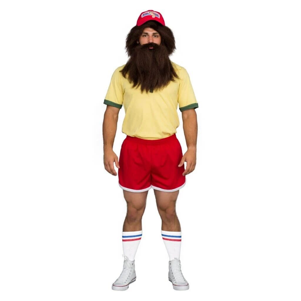 - Includes a shirt, socks, shorts, beard, wig and hat.
