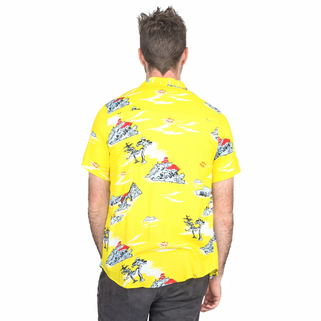 - Includes a white 100% cotton t-shirt and yellow button up 100% polyester shirt. Does not include anything else.