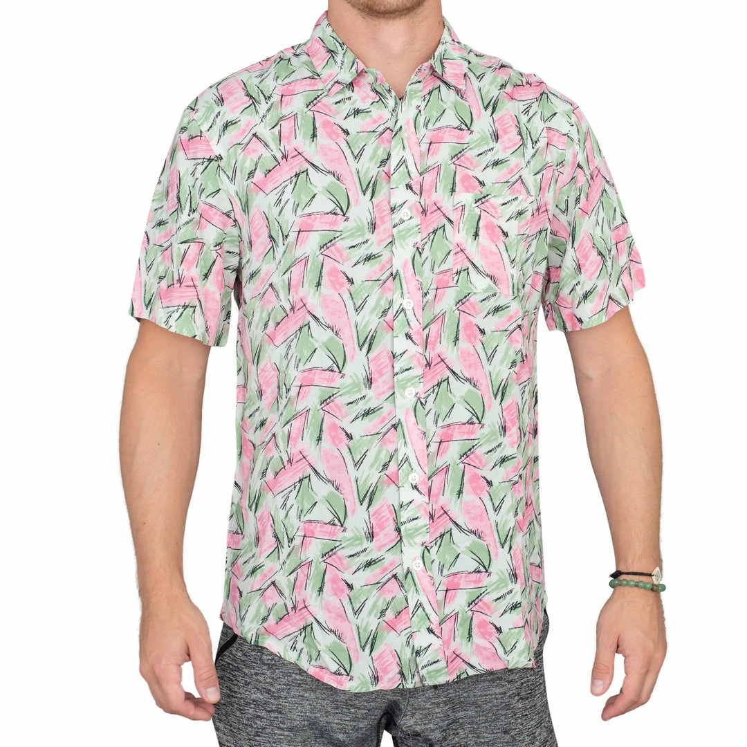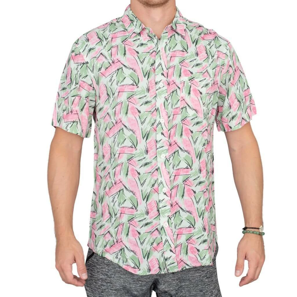 This 80’s inspired pattern is unique and timeless. If you wear this shirt you will be sure to stand out.