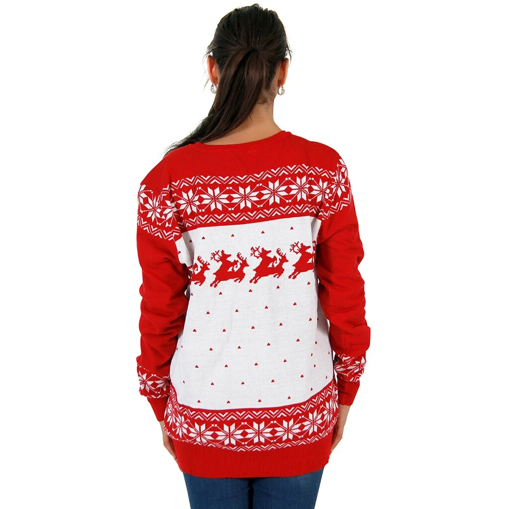 This ugly Christmas sweater shows a couple Christmas reindeer Christmas humping each other. Can’t tell where one reindeer begins and the other ends? It’s a Christmas Miracle! Available in Adult sizes only, for obvious reasons.