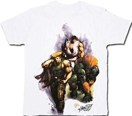 Now THAT’S an Ultra Combo! This officially licensed “Street Fighter IV” t-shirt features promotional art of Blanka, Ryu, and Guile from the Capcom blockbuster. Order yours today and pay tribute to the decade’s best fighting game.