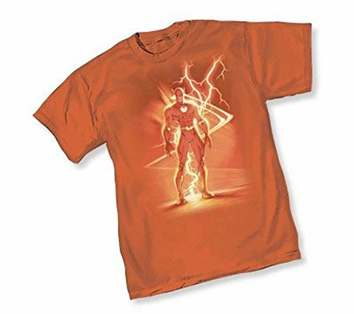 The unmistakable artwork of Michael Turner graces the front of this officially licensed Flash t-shirt. Wally West, DC Comic’s third incarnation of the scarlet speedster is surround by bolts of lightening representing the mysterious “Speed Force” in this print. This is one bold red tee that stands out.