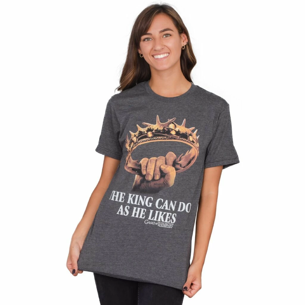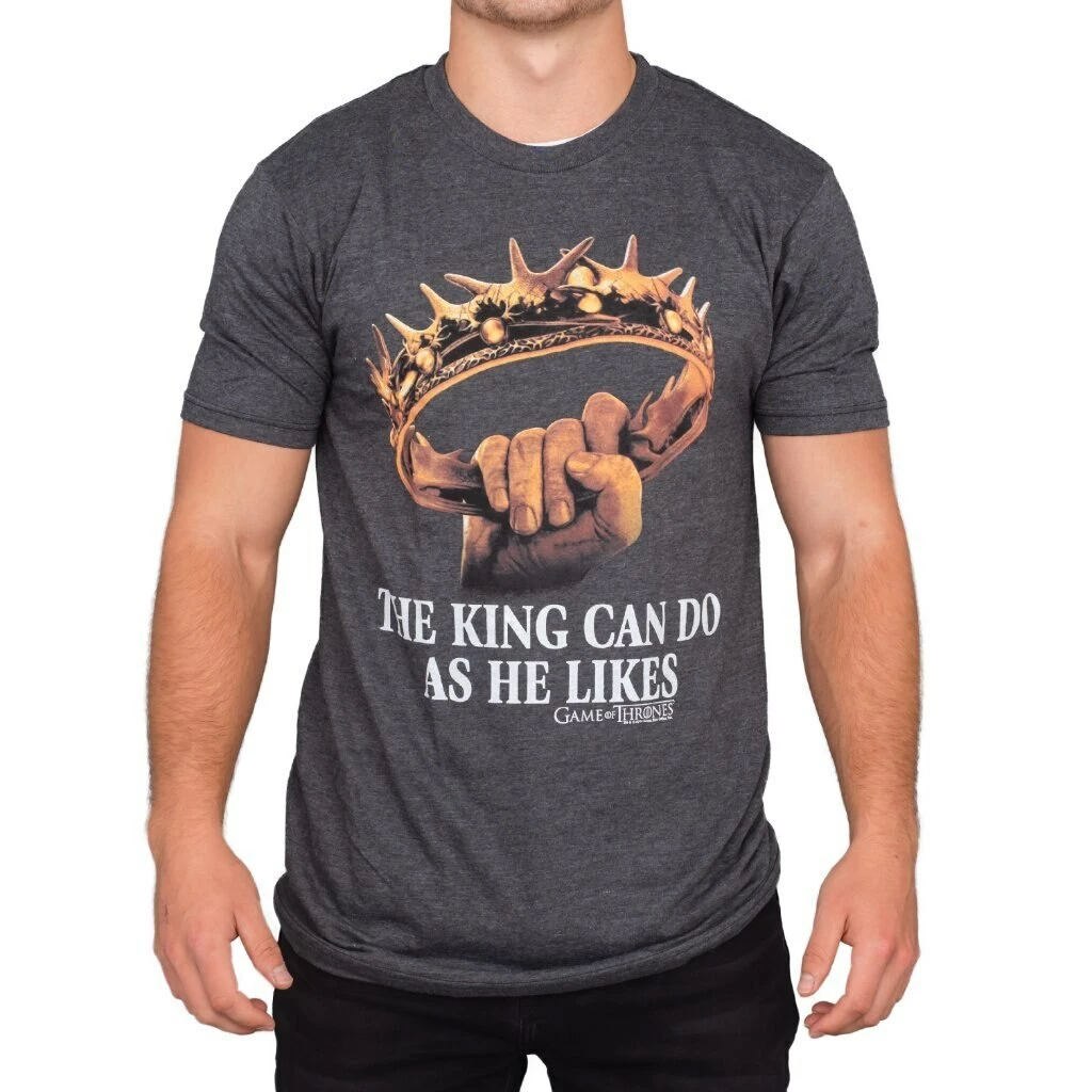 If you’re a religious fan of all things HBO’s Game of Thrones then you’ll love this really stylish and fun Game of Thrones “The King Can Do As He Likes” officially-licensed t-shirt. As a fan of Game of Thrones, this King Game of Thrones tee not only shows everyone exactly how you feel about the hit HBO television series but it also says something about what it might feel like to be royality.