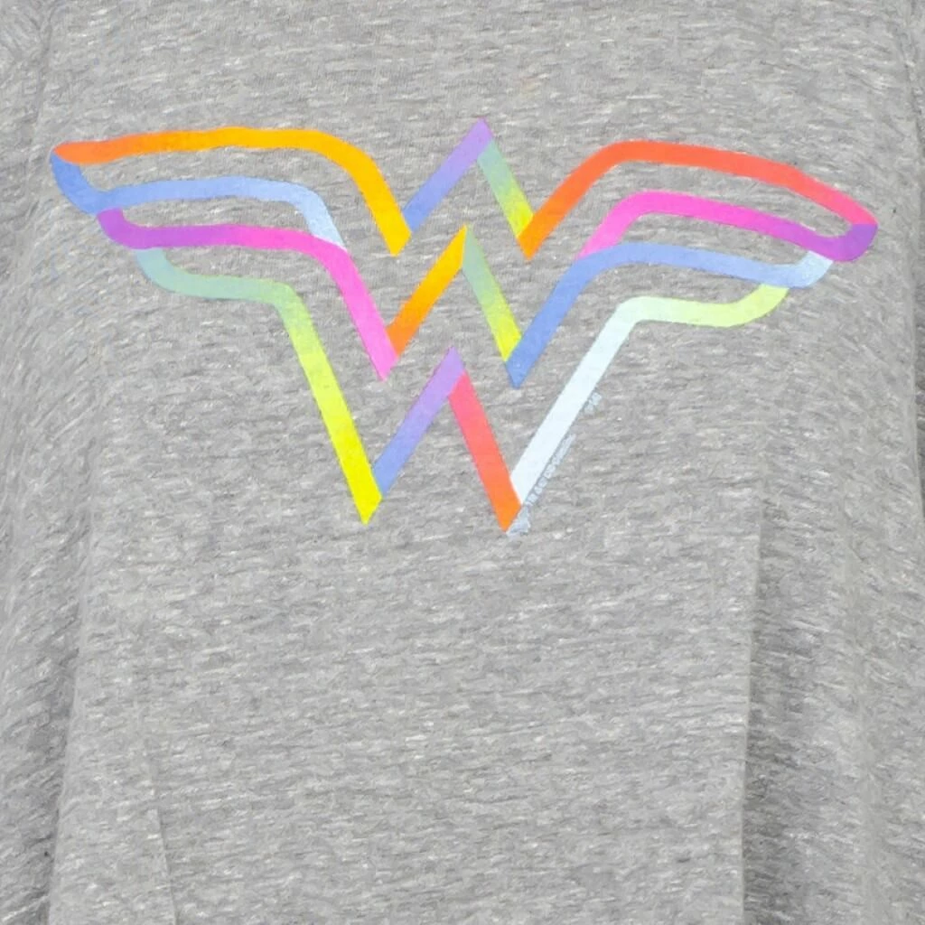 Are you looking for a cute and fun way to show off your inner superhero? If so, this officially licensed DC Comics t-shirt should help. Featuring the Wonder Woman logo in a rainbow pattern, this adorable superhero t-shirt is sure to please any Amazonian Goddess in the making. Featuring an open and flowing design, this Wonder Woman t-shirt is great for anyone who is working out to become as strong as their favorite DC Comics heroine!