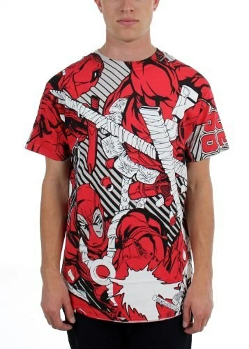 Only a true lover of all things Marvel deserves this Deadpool comic book t-shirt. Featuring a crazy, awesome, all-over pattern, this Deadpool Marvel comic book t-shirt not only shows everyone exactly how much you love all things Deadpool but it also shows off your truely nerdy, geeky, one-of-a-kind fashion sense as a true believer in all things in the Marvel universe. This Marvel Universe Deadpool comic book shirt is totally awesome.