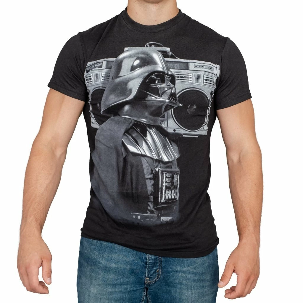 Do you ever wonder what Darth Vader would have looked like if he had been more hip in the 80’s? Well, maybe he would have carried around a boombox on his shoulder! Back in the day, carrying around a boombox was like advertising your awesomeness to the world. Doesn’t that sound like something this Sith Lord would do? If you’re a fan of the dark side, show it off in style with this officially licensed Star Wars t-shirt. Show some love for the greatest sci-fi series of all time with this awesome Darth Vader t-shirt!