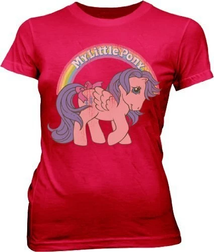 This classic My Little Pony t-shirt design is a perfect fit for juniors or young women who’d like to go a little retro. Our red, classic pony design is officially licensed and is a throwback to the 1980’s version of My Little Pony. This ain’t your My Little Pony: Friendship Is Magic t-shirt. This is old school all the way. Made of 100% Cotton and distressed for that vintage look, our red Pony shirt will have the new MLP fans jealous.