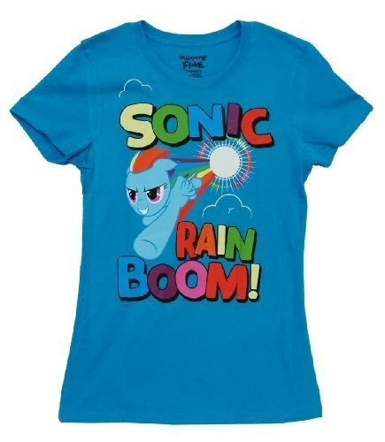 Sonic Rainboom!!! Everyone’s favorite pony on My Little Pony: Friendship is Magic is Rainbow Dash and now you can show everyone how much you love Rainbow Dash and her special power–the Sonic Rainboom–now when you wear this My Little Pony Sonic Rain Boom Juniors Turquoise Blue t-shirt. Rainbow is the fastest pony in Equestria and if you wear this officially licensed, blue Rainbow Dash tee you’ll be 20% Cooler.