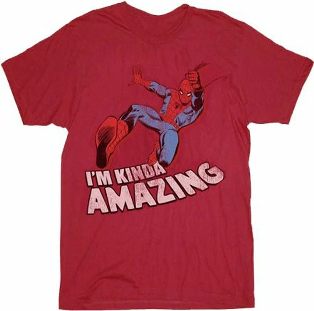 Spider-man is kind of amazing, which is why he has no problem admitting it. If you agree about how amazing Spider-man is, why not show it off? This officially licensed t-shirt features a distressed print of spidey for all you web slinging fans out there!