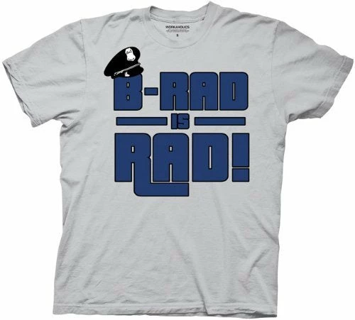 Are you fond of relaxing in tight spaces? Then chances are you’re just as rad as B-rad! Brad sure did look nice in that cop uniform, didn’t he? If you’re a lot like this unforgettable character from the hilarious television show Workaholics, show it off with pride! This officially licensed Workaholics t-shirt features the phrase “B-RAD IS RAD!” making it the perfect choice for any die hard fan of the show.