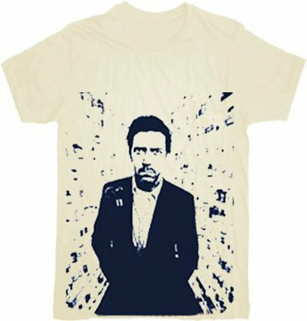 This eye-catching “House” t-shirt offers an iconic peek inside the good doctor’s brain. A soft print of Dr. Gregory House himself trapped inside a pharmacy covers the front of the tee. It’s fitted, making the shirt ideal for layering fashions.