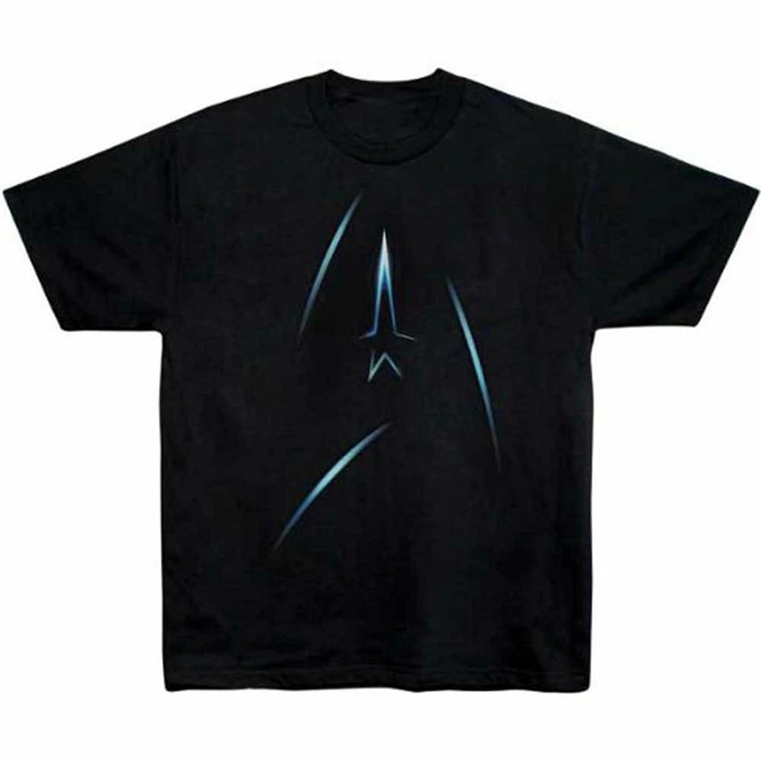 This classic black “Star Trek” t-shirt features a large, subtle print of the Enterprise’s classic assignment patch, which was later adopted by the entirety of Starfleet. The delta symbol reminds us all to continue looking to the stars.
