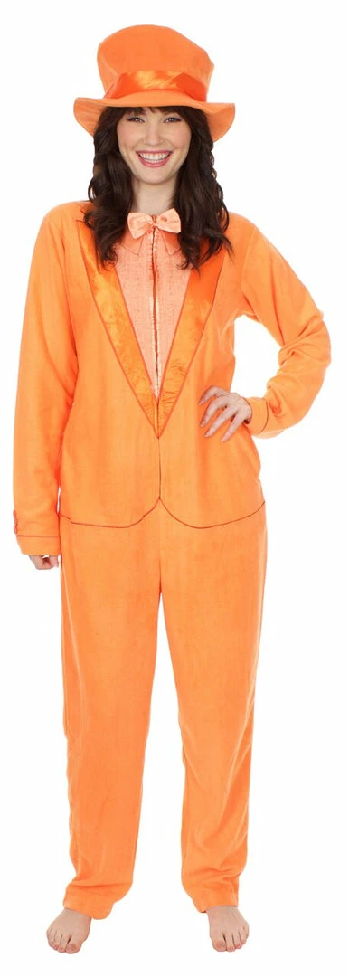 Lloyd Christmas had an amazing sense of style, which is why he chose to show up to the party dressed in a fancy orange tuxedo! If you’ve ever been jealous of Lloyd’s fashion sense, these officially licensed Dumb and Dumber pajamas might just be right up your alley. With a classy hat included, now you can look fancy and ready to party no matter where you are – even if you’re just heading to bed! Celebrate your favorite movie in style with the help of this awesome tuxedo pajama set.